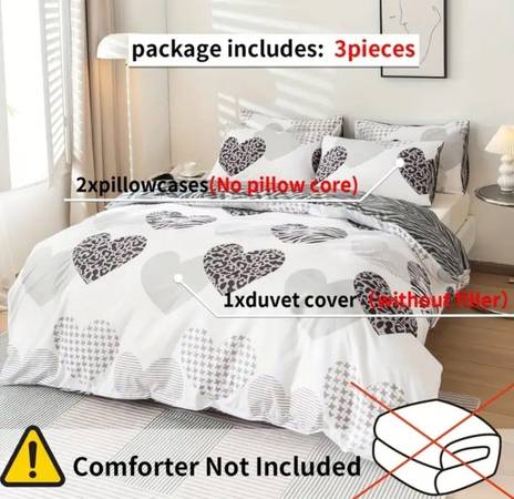 Brand new set, never been used. Queen size left only. COMFORTER NOT INCLUDED. The set includes duvet cover and 2 pillow cases. PRICE IS FIRM! For pick up only in El Cajon!!