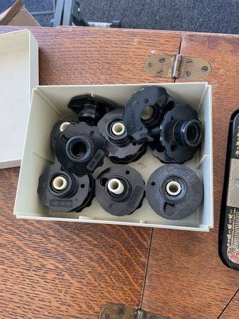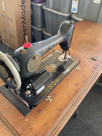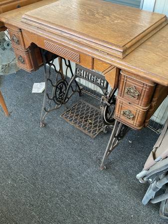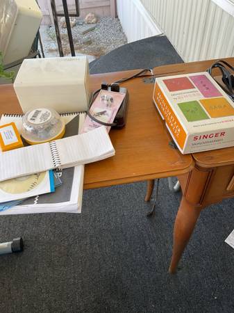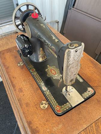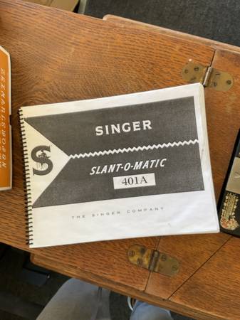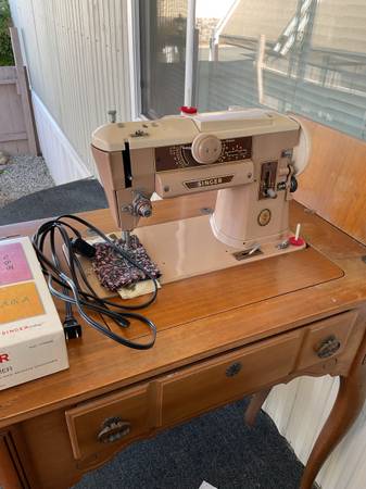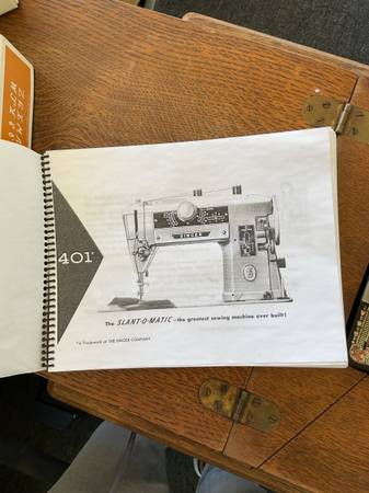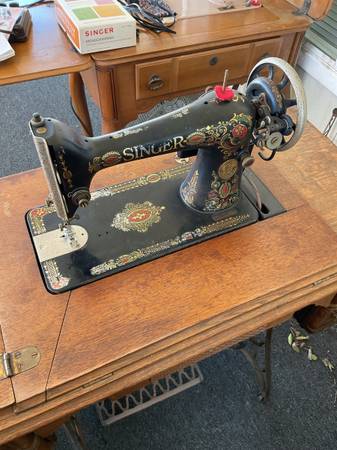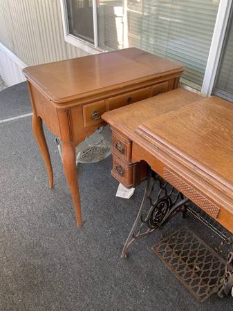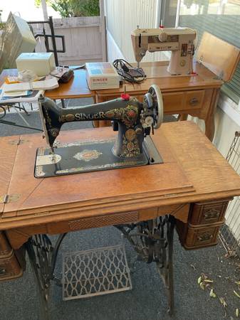 2 vintage singer sewing machines with all accessories in cabinets @ 1 price of $200.00 dollars. Treadle model 66 circa 1910 & 1970 model 401a. Both in good condition. Everything you see is what you get. The model 66 treadle had an electric motor added for the best of both operations. It was done @ a professional sewing shop. They are being sold as a pair. I need both of them gone, no more room left here.