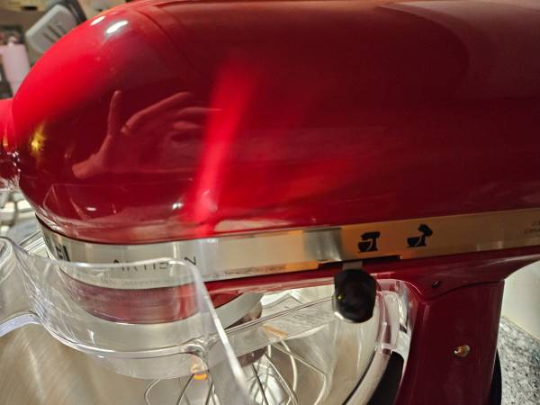 Brand new Kitchenaid mixer, never used. It still has the ziptie on the cord, so you can't even plug it in. I just purchased this & decided I will probably not use it much. I threw the box away...