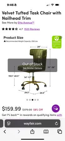 Super cute and comfy office chair. Barely used. Bought last year from wayfair. See image for dimensions. Height adjustable