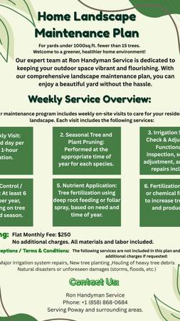No job is too small! I provide quality work with attention to detail. Serving all of East San Diego County and nearby areas.