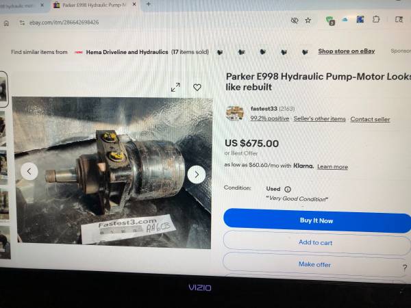 Parker E998 Hydraulic motor. 1 1/4" tapered shaft. Like new condition (rebuilt) asking $300. The best way to contact me is text or leave voicemail . I don't respond to emails.