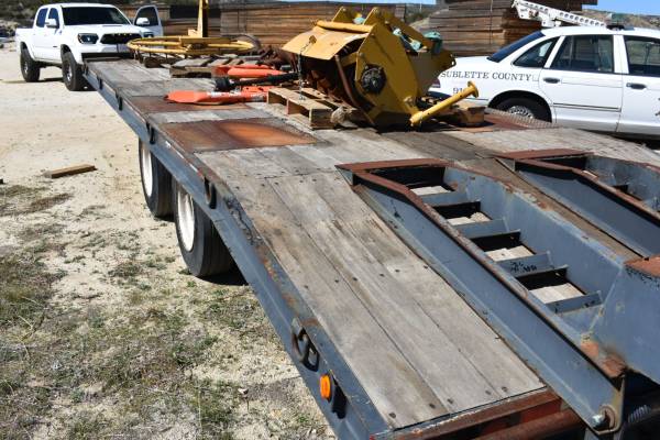 SUPER NICE HARD TO FIND TRAIL KING TK40 CAN HAUL A SMALLER DOZER, BACKHOES, ROCK SAWS, HEAVIER BOBCATS AND MORE, 26 FT DECK 102 WIDE GOOD TIRES NICE NEWER GRAY PAINT READY TO TOW BEHIND YOUR AIR...