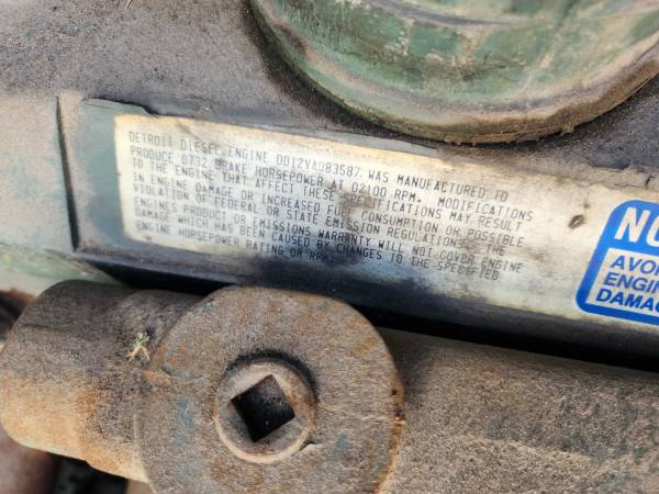 V12 DETROIT DIESEL MODEL DD12VA083587 BRAKE HORSEPOWER (732) AT 2100 RPM TWIN TURBO.