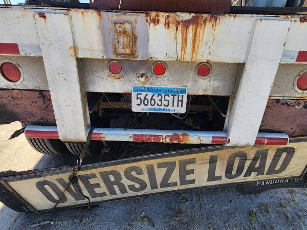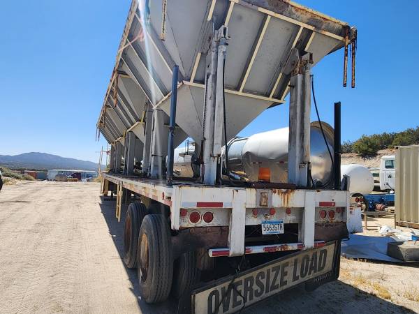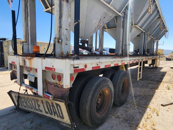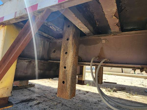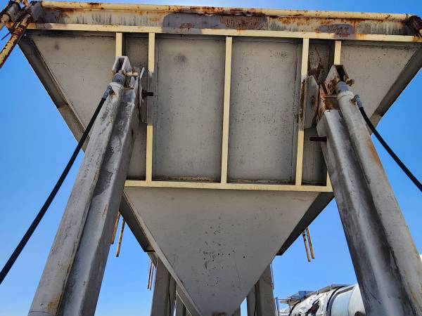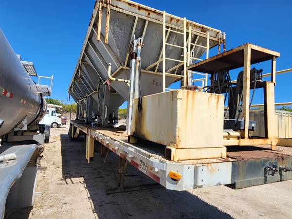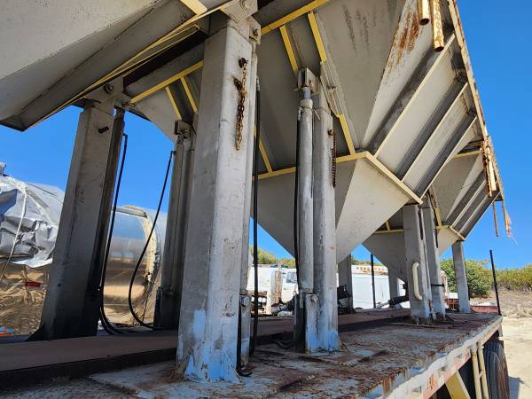 THIS SEMI TRAILER WAS USED FOR BRIDGE CONSTRUCTION PROJECTS THE HOPPERS USE HYDRAULIC LEGS TO LIFT UP UNDER BRIDGES FOR SAND BLASTING PROJECTS CATCHES FINES MATERIALS. SOLD AS IS CAN BE MODIFIED FOR OTHER THINGS. HAS HYDRAULIC PONY MOTOR. SELLING AS IS NO TITLE $5000