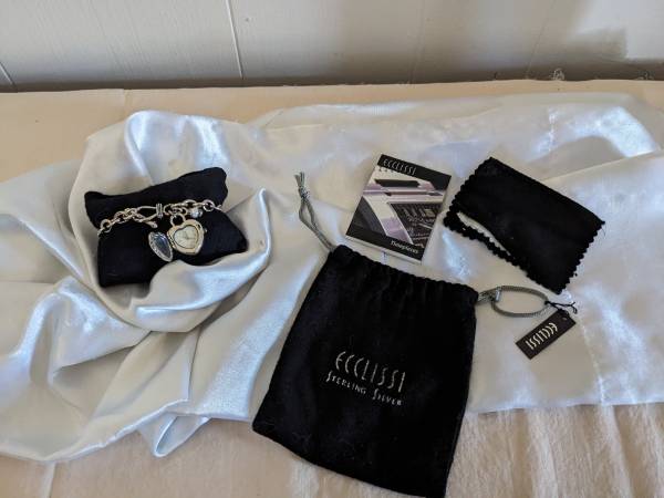 Ecclissi Sterling silver, rollo style toggle bracelet. Mother of pearl face. Comes with original watch pillow, booklet and cleaning cloth. Approx 7" band ***Needs a battery