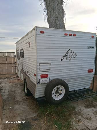 1985 Alejo camping trailer for sale. The trailer is 12 x 7 with working AC, refrigerator, microwave , stove , water, and tanks. The trailer is in great condition and ready for camping. Amazon fire smart TV installed recently. Registration up to date, with title in my name and on hand. I'm asking $6,000. Price is firm.