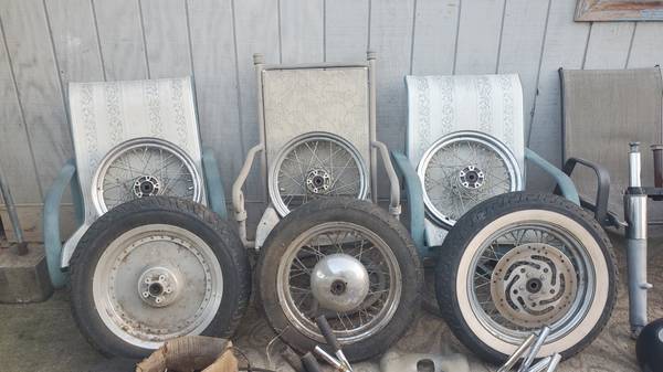 Wheels, new Shovel Head exhaust, wide glide front end and lots of stuff. $1,000 takes all or call with what you need. Please call .