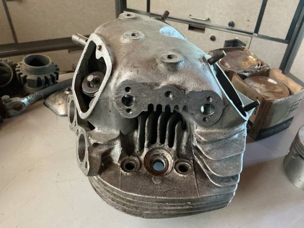 Asking $40 for commando rear rack with wood inlay. Asking $75 for new old stock 750cc? pistons +10. ( bonus 3rd new piston included free. Also have rh10 head has a cracked fin asking $125. Discount if someone wants all . ALSO 1970 commando complete assembled engine with matching number transmission 600.