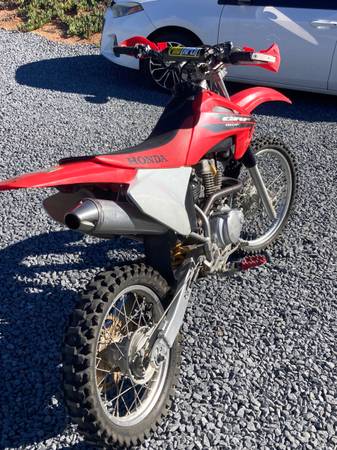 150cc, 5spd, electric start, Dunlop Geo Max front and rear dirt tires, Baja Designs Squadron Sport headlight. Hand/lever guards. 16” rear wheel, 19” front wheel. Great mid-size bike for kids and shorter adults. Needs a new home, my daughter has out-grown it.