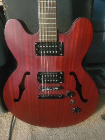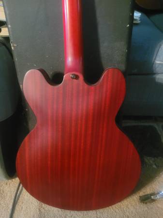 Epiphone dot studio in natural mahogany. It's epis take on the famous es-335. Perfect shape. Plays beautifully but I need to downsize. Come check it out. You'll love it.