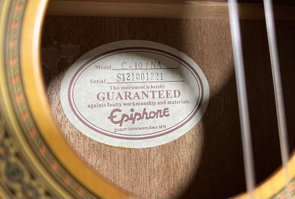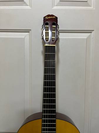EPIPHONE ACOUSTIC GUITAR WITH NEW MARTIN NYLON STRINGS/GIG BAG! This guitar is in very good condition, comes with a gig bag and has a very good sound. See pics for more info - text or email if...