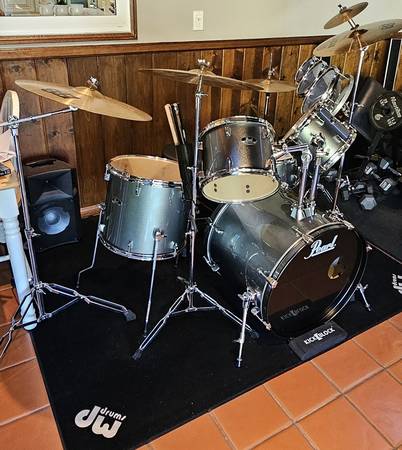 Selling a Pearl Roadshow 8-Piece Drum Kit. Invested $1,400, asking for $700. • Pearl Roadshow Drum Kit – bought new in 2022 - $750 • Color: Charcoal Metallic • Cymbals are all matching Sabian B8 -...