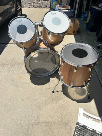 All drums have Remo Ambassador reso heads, kick drum had a Remo P3 black for the reso side