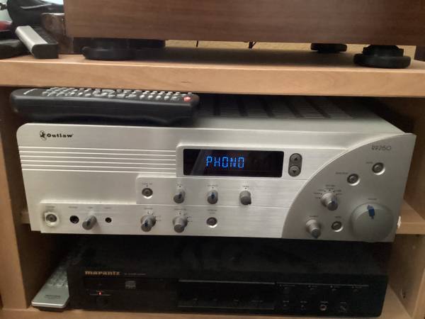 Outlaw Stereo Receiver, recently serviced. works great! 100 Watts of power! With Remote. Key Specifications Parameter Spec / Description Continuous Power (per channel) 100 W × 2 into 8 Ω, 20 Hz–20...