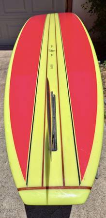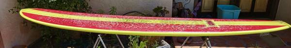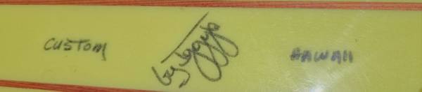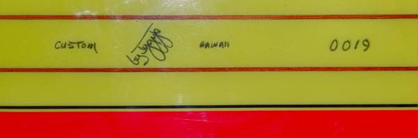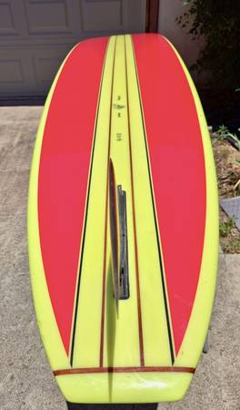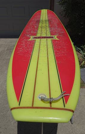Late 90’s Dewey Webber Performer. 10’, hatchet fin one small blemish!one owner has been in garage for the last 20 years. Shaped by Harold Iggy. One of 25 (#19)