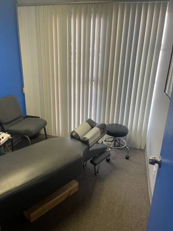 Different sized rooms available. Rooms starting at $600 a month rent, including: utilities, WiFi, communal waiting room, public restrooms, access to adjusting table, traction/flexion & distraction table, E-stim machines. Discounts available if renting more than one room.