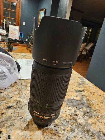 Nikon 70-300mm vr af-s NIKKOR ED FX. Excellent condition. No. Scratches glass is clear. Perfect. Was my backup. All caps and hood
