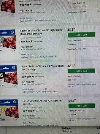 36 inks brand new! I got a new printer at work. These are used for my photo stylist R2880 All are fresh and have been stored in a climate controlled room I paid 14.00 per box before taxes so the value is 546.00 before taxes get them all for less than 1/2 price I work in santee area but live in north county beach area can pick up where its closer for you