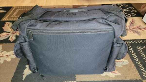 This bag is very well made and in excellent condition. Has a built in rain cover, top handle & shoulder strap. Additional front and side storage pouches. Has a quick access zipper in the top cover. I could not find a model name/number on the bag. Tenba is known for providing high-end camera bags designed for professionals, often incorporating features that prioritize protection, organization, and durability.
