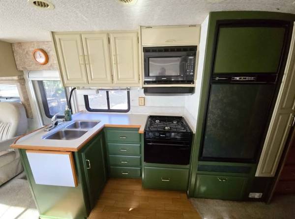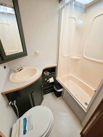 All sinks, shower, and toilet are functional and in good shape. Water pump works flawlessly. Propane furnace also works. Refrigerator can run off AC and propane power. Comes with a bluetooth Watchdog surge protector/kwh tracker. Most of the RV has a fresh coat of paint inside and have plenty more paint if you want to continue. Also will include a tub and tile refinishing kit if you don't like the old school yellow shower insert. Kept very very clean and smell free. Plenty of outlets and they all work. Tons of overhead storage and closet storage.