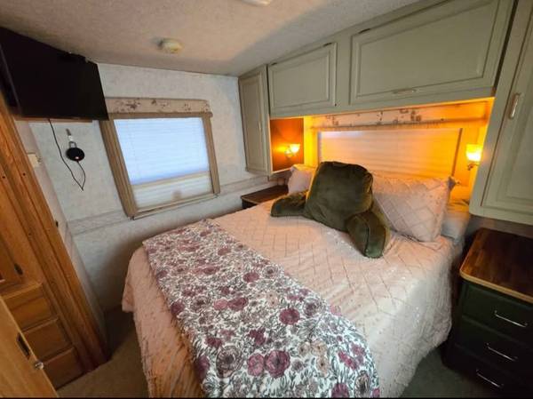 Selling as we are moving out of state, otherwise I would keep it. All lights, appliances, and tanks work. Both ducted AC units work and can both run at the same time while hooked up to 30amp shore power. Brand new coach battery, and has two house batteries. Comes with a macerator for pumping the black and Grey tanks, can pump 100 feet away using just a regular garden hose. Also comes with a brand new in the box tankless water heater(not yet installed) the current 6 gallon water heater also works perfectly. Has a new drinking water hose.