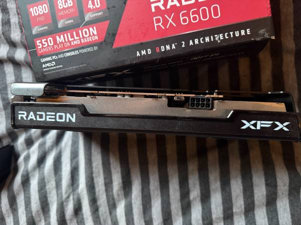 Excellent condition. Purchased back in June of this year so only a few months old. Box included. $140 Text or email 8GB 128-Bit GDDR6 Core Clock 1626 MHz Boost Clock 2491 MHz 1 x HDMI 2.1 3 x...