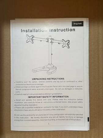 For mounting two 13inch to 24 inch LED or LCD monitors Can free stand or fastened to a table, adjustable height New, never used open box No phones calls, text or email only please CASH ONLY