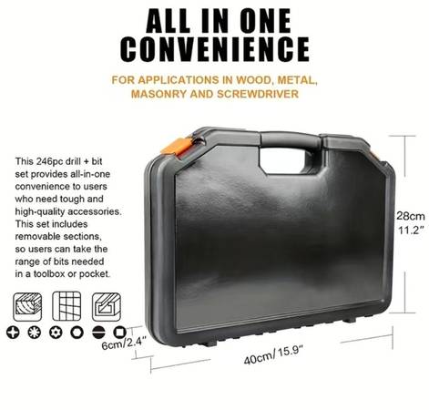 DRILL NOT INCLUDED! Brand new set, never been opened or used. Includes 246 pieces. PRICE IS FIRM! For pick up only in El Cajon!!