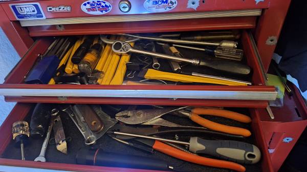 Rolling toolbox with wrenches, socket sets and miscellaneous hand tools. Father was a mechanic and passed away. Great quality. Asking $400 O.B.O. Please let me know if you have any questions.