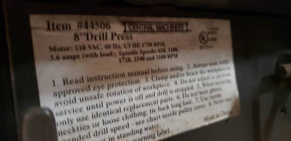 Harbor Freight - Central Machinery 8" capacity bench top drill press