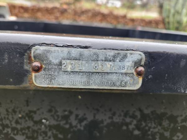 NEAR MINT 1950s DAVID BRADLEY MODEL 231 417 SOLD BY SEARS IN ORIGINAL CONDITION NOT CUT UP NOT RUSTED OUT HAS ORIGINAL PAINT. THE TRAILER HAS BLACK YELLOW CALIFORNIA PLATE AND ORIGINAL TITLE. PRICE...
