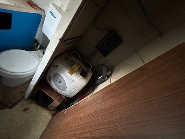 -Has a toilet, sink, shower, water heater, kitchenette.
