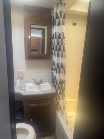 26’ tow trailer bunkhouse. Good condition- books out at $10,200-$11,000. Everything works, no leaks. Booth cushion fabric has some flaking and the two chairs have been removed to make room for extra...