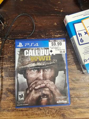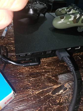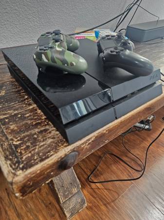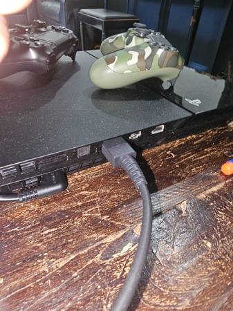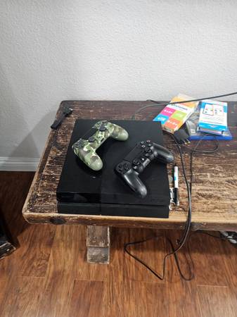 PS4 with all wiring, except for the HDMI cable. Wireless controllers are rechargeable. 134 gigs comes with CALL OF DUTY WWII call or text if interested six one nine 794.9052