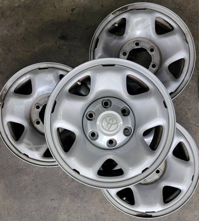 > Have a complete set of OEM 2021 Toyota Tacoma wheels - 16" with a 6x139.7mm lug pattern - Complete with all center caps and lug nuts - OEM working sensors included >> Asking $150 CASH...