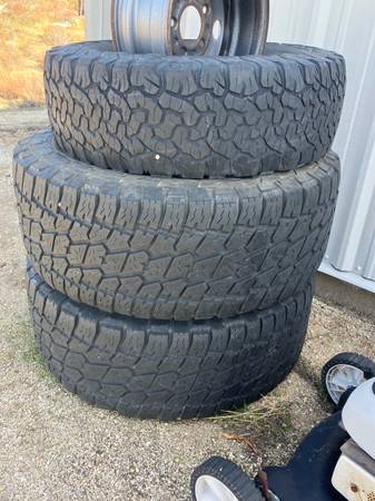 I have two tires for sale Both in great shape size is 355/65/18. Great for your big ass truck!(100$) Also have one 265/75/16 big all terrain (40$)