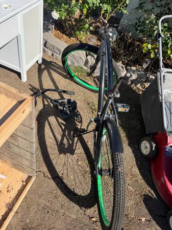 There’s an outdoor lounger, kids desk, office chair, some end tables, some shelves, a rabbit/small animal cage, a bike (handlebars & seat detached but with it), small grill, carpet machine, ottoman, swiffer stuff, odds & ends like lamps & wall hooks, & some mixed (kids & adults) clothing items