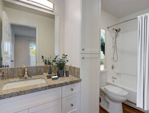 Experience world-class living in Carlsbad at San Katrina, where upscale amenities meet a charming, beachside community. The community features a sleek granite and stainless steel kitchen, perfect for culinary enthusiasts, and hardwood floors that add a touch of elegance. Enjoy the convenience of an in-unit washer and dryer, along with assigned parking and a comprehensive security system for peace of mind. Step outside to tropical landscaping and explore the nearby sandy beaches, just one block from Carlsbad State Beach, or visit the famous LEGOLAND theme park with its rides, shows, and attractions.