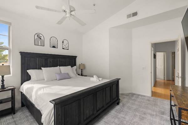 2-story, 3 bed, 2.5 bath townhouse offers a luxurious living experience from top to bottom. Open floorplan that seamlessly connects the living room, dining area, and kitchen. For outdoor entertaining, the townhouse offers a large, private outdoor area, which is perfect for hosting a barbecue or simply relaxing with a good book. The master bedroom is a true oasis, featuring a plush king-sized bed, private entrance, and an abundance of natural light. Gated community includes a pool, spa, and its very own dog park, perfect for pet owners. **Current price is for a one year lease. Price is subject to change based on the season and can be negotiated depending on the lease length. Please message the landlord for applications and tours. Prospective tenants will need a lease agreement and a credit-based security deposit. Pricing is subject to seasonality and will be increased from April to August.