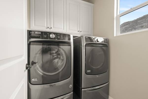 This 4BR/3BA offers traditional appeal with a subtle hint of Southwestern design. The backyard backs up to a well-kept hillside. The living room offers a fabulous gathering space with an open concept kitchen including a Whirlpool French door refrigerator, gas range stove, dishwasher, built-in microwave. The kitchen flows effortlessly into the vast living room. The master bedroom has a spa-like en suite w/soaker tub. Other features: 2.5-car garage, sprinklers w/timer, Maytag washer and dryer, robust solar power system, tankless hot water heater, 2 NEST thermostats, SMART ring camera, motorized shades in common areas. This home is close to shopping centers, multiple parks, community pools, and much more! If applied, all tenants must adhere to HOA CCR guidelines. Price is based on a one-year lease. For shorter leases, pricing is seasonal and subject to change. Prospective tenants will need a lease agreement and a credit-based security deposit.