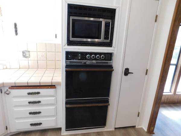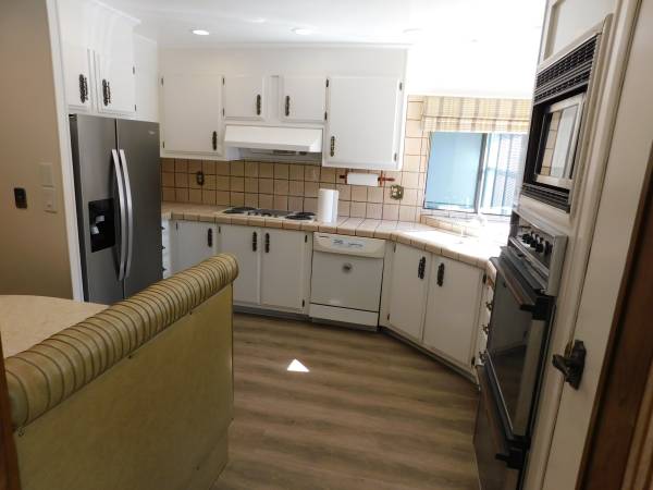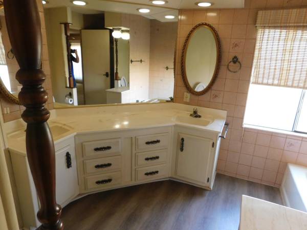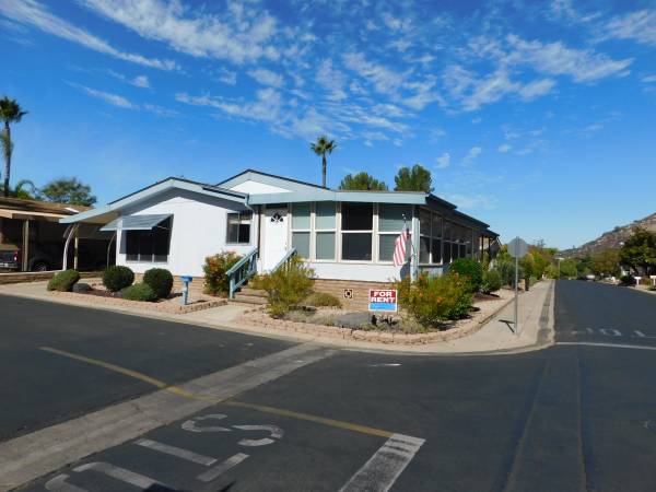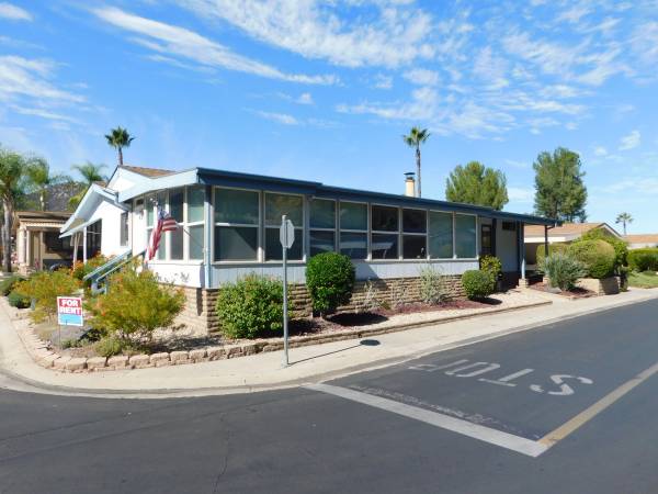 Resort Living in Champagne Village Senior Mobile Home Park (55 up) adjacent to Lawrence Welk Resort. Executive home. 3 Bedroom 2 Bath, 2040 Sq. Ft. Beautiful Home in excellent Condition. Very large Master Bedroom with Walk in closet. 2nd Bedroom is large with big closet. 3rd bedroom is currently set up as a den. Very large living room with Fireplace. Dining Room, Utility room with Washer & Dryer. Kitchen has built in Breakfast Nook, New Refrigerator, Stove, Dual Ovens, Microwave, Dishwasher. Large L-Shape Wrap Around enclosed porch. Carport, Storage Shed, Gardner. Water & Trash are paid. Central air Conditioning and Heating. Overhead Fans. Small Backyard with artificial turf. Corner Lot with view. Lots of closets and Built In storage places. Very Clean and quiet neighborhood with great neighbors. Champagne Village amenities include pool, spa, club house, fitness room, etc.
