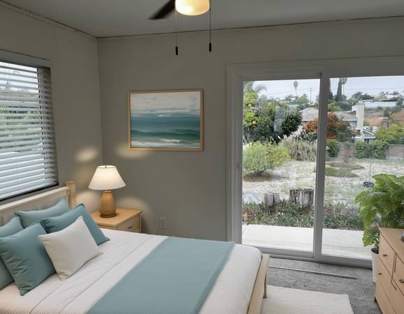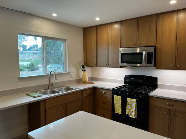 Fully refreshed from top to bottom! This bright and modern home features a brand new kitchen, new sliding doors and windows, new roof, furnace, and new flooring throughout. Each room opens to the outdoors with sliding glass doors and includes ceiling fans for comfort and natural light. Long shared driveway.