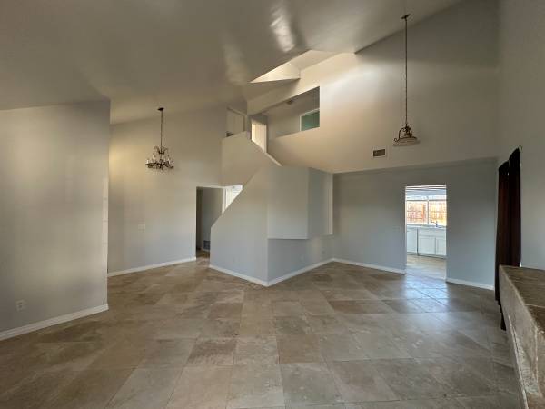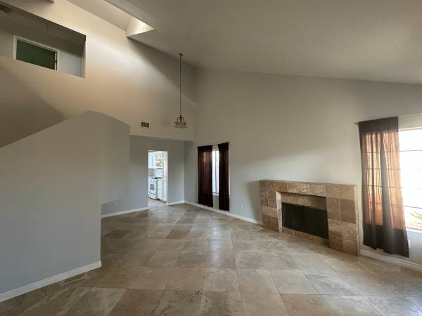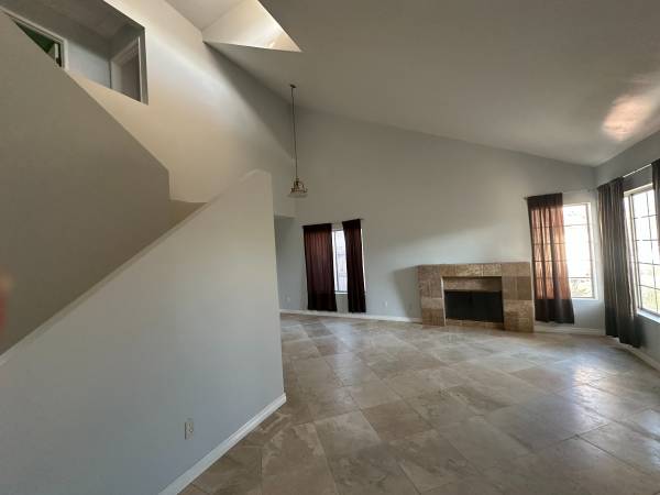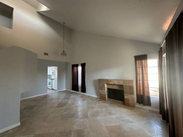 Fireplace, fenced lot, and vaulted ceilings