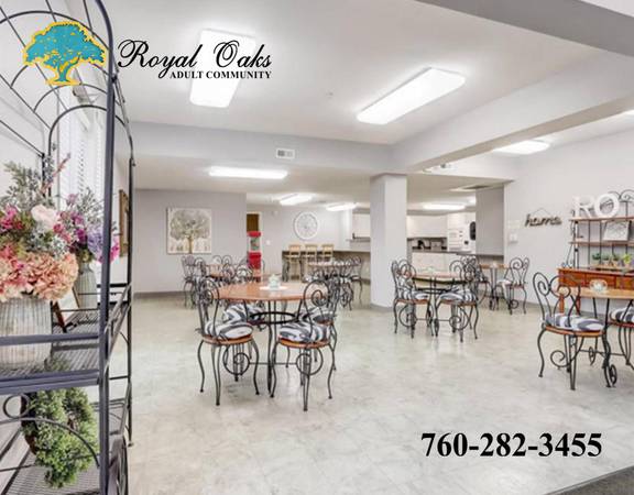 Located in the scenic North County area of San Marcos, Royal Oaks Senior Living boasts great views and a quiet atmosphere while being close to the ocean.Residents have easy access to quality markets and shops, perfect for daily errands and leisure outings.The community's proximity to Twin Oaks Golf Course and multiple parks offers opportunities for outdoor recreation and relaxation.The nearby CSU adds an academic touch, while numerous cultural events and happy hours keep the social calendar lively.With a heated pool, cabanas, and serene surroundings, Royal Oaks is an ideal place for seniors seeking a blend of comfort, entertainment, and beautiful natural scenery.
