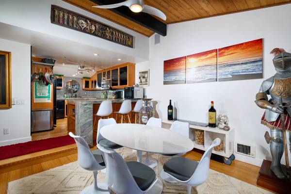 "The Sanctuary" at S. Sierra. Beautiful, well-provisioned 2-story condo, steps to the beach! Two bedroom, 2 baths on ground floor, along with full-sized LG washer & dryer. Upstairs is full of light with open floor plan, soaring vaulted ceiling, living room, dining room, fully provisioned kitchen, balcony (with futon) and large high-end BBQ grill. Office and half bath upstairs. Kitchen is well-provisioned with everything you need!!
