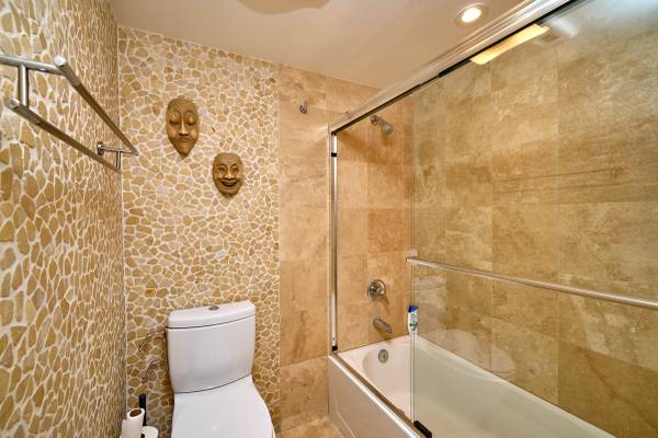 Ceiling fans in every room. Entire condo has been beautifully updated. Stone shower in master with lots of pressure from the shower-head, bathtub in second bathroom, amazing porch and balcony to listen to the tranquil ocean, gas fireplace with blower, granite countertops in kitchen, heat in every room.