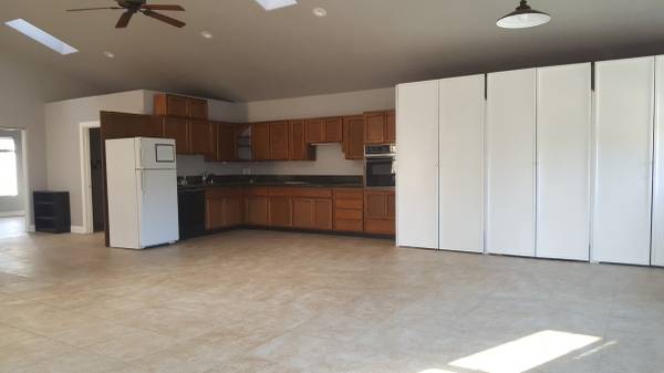 Upstairs space- open great room, high ceiling, lots of natural light from windows and skylights, ceiling fans 2 rooms Large eating area 1 bathroom 1 parking space Sorry, No pets, NO smoking