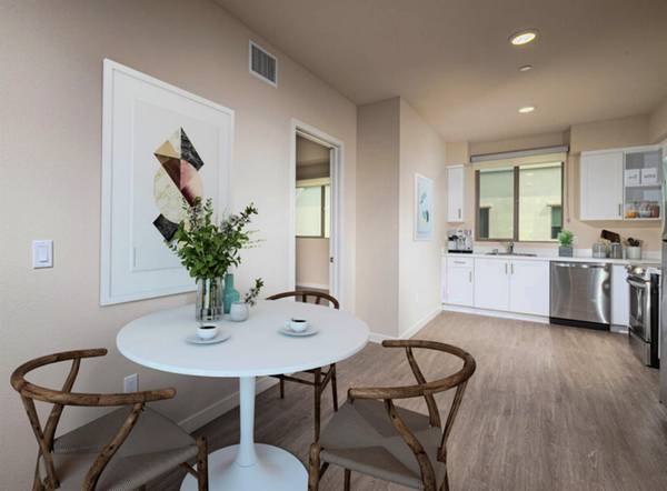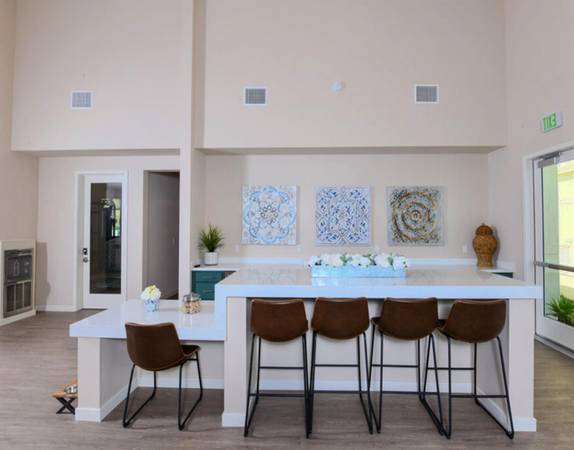 The community offers a collection of pet-friendly studios, one, and two-bedroom apartments featuring sleek white cabinetry, stainless steel appliances, quartz countertops, and wood-style plank flooring. Residents enjoy high-end amenities, including a 24-hour state-of-the-art fitness center, professional coworking spaces, and a beautiful bocce ball court, perfect for outdoor recreation. Soak up the sun or dine al fresco at one of the community's BBQ areas, or unwind at the spa and heated pool, which feels like a vacation every day.