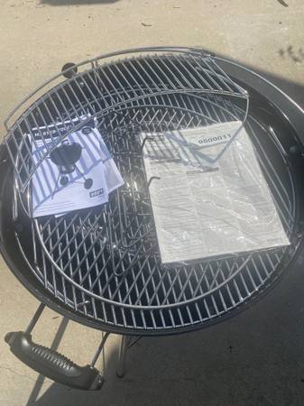New, unused Weber master touch charcoal grill w/ optional used chimney. Never been used, no damage. User manual included.